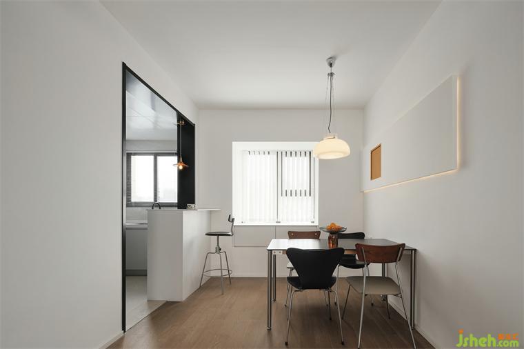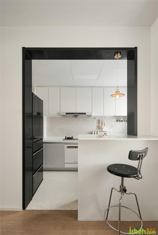 原始厨房是封闭式,拆除后设计一米的小吧台,平时可用作水吧、传菜台,享用早餐。