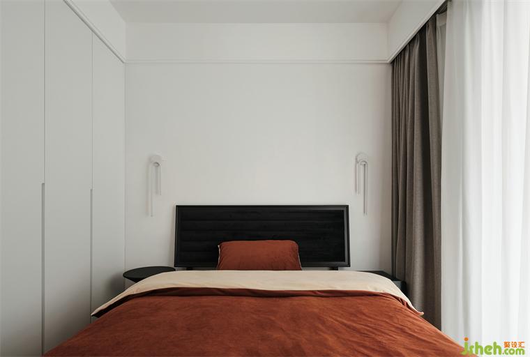 次卧只用了两盏床头吊灯让整个空间更有设计感。由于次卧空间不大,所以尽量的简洁,黑色的床可以任意搭配喜欢的颜色,宁静炽热随心而动。