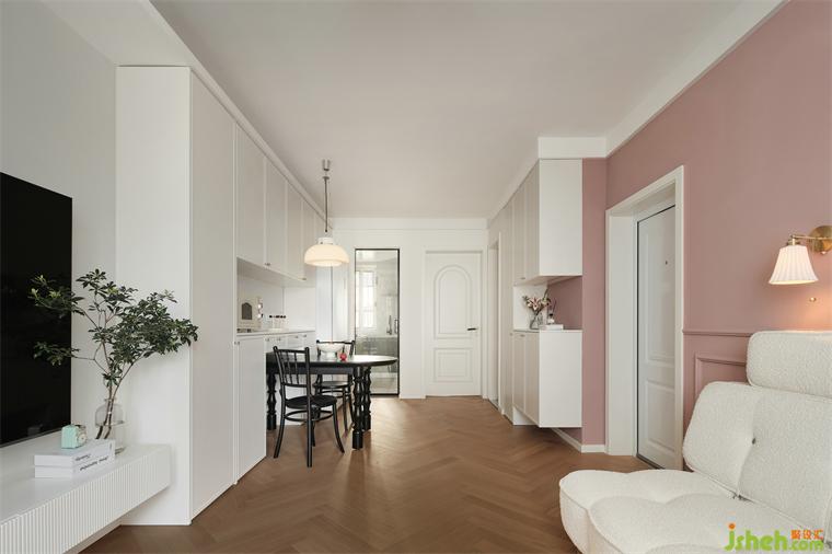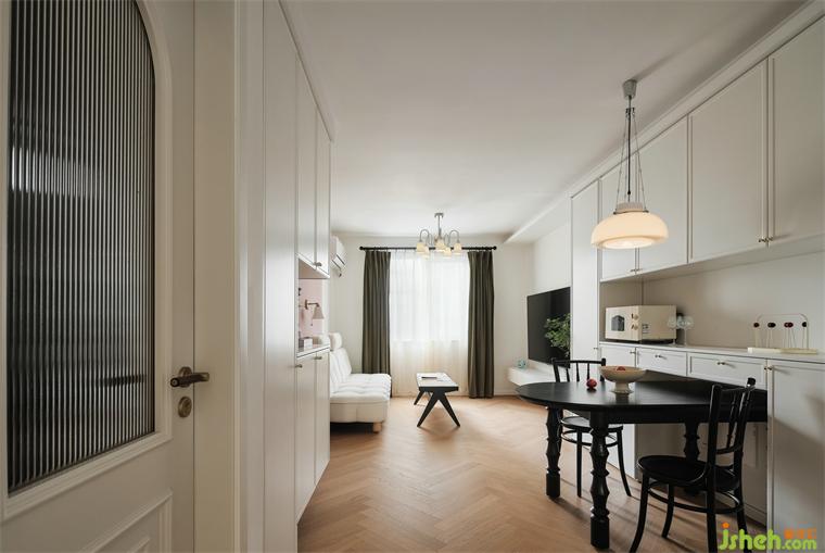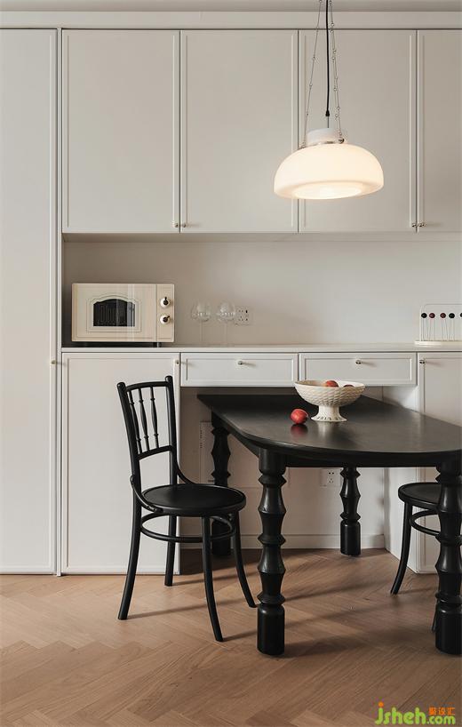 餐厅采用柜体收纳式,餐桌嵌入式,增加收纳又可以满足三五好友来聚餐,秒变大长桌的实用性。