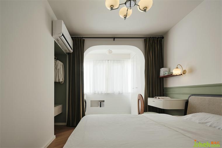 弧形门洞划分了卧室与阳台的空间,轻柔的白色纱帘随风摇动,装修公司最大程度给予心灵的放松。