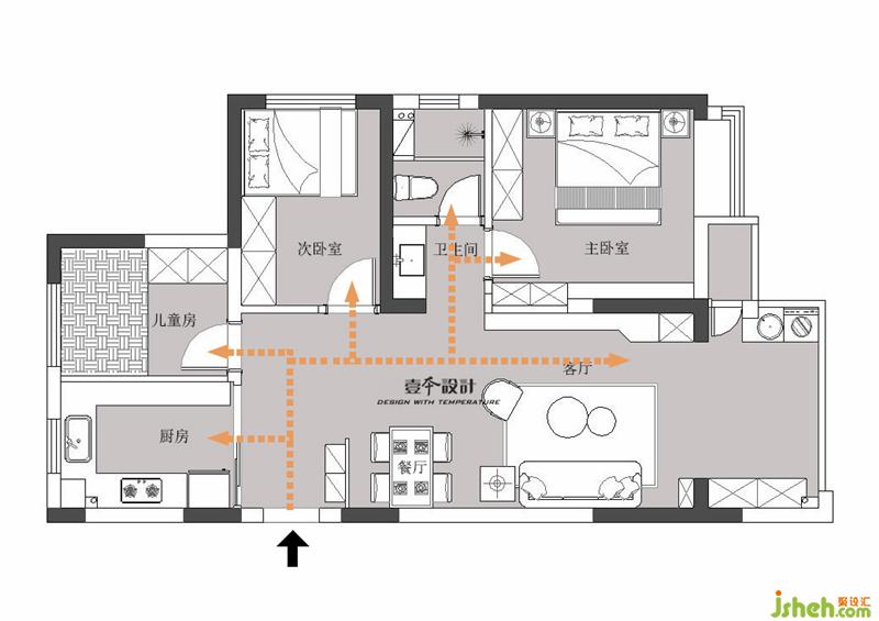 这套户型方正四平八稳,南北通透采光正常。但是因业主的储藏需求较大,经过现场勘测及设计分析,发现户型调整需要解决以下几个问题: