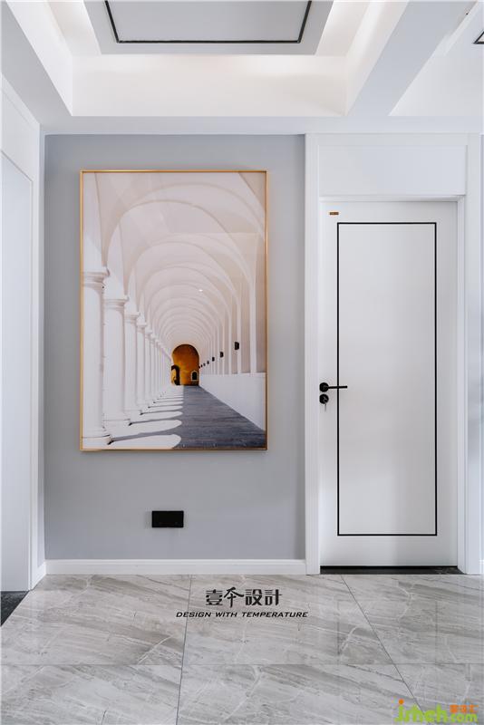 ▲入户正对着一副挂画,既提升了空间的质感,又将整个视觉拉进了另一个空间。