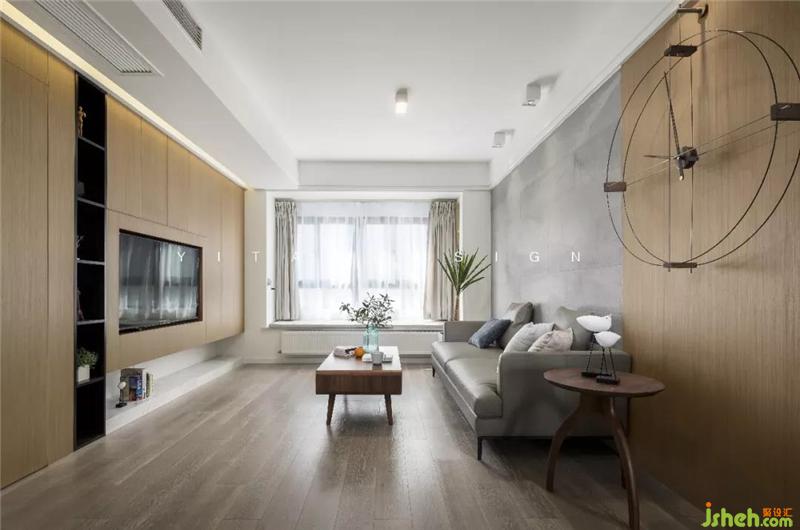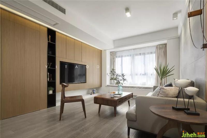 客厅电视背景墙较短只有2米多,整体缺少储物空间。室内设计师