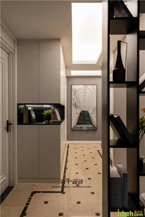 1:因过道采光较弱,增加鞋柜底角灯带,并暗藏扫地机器人
