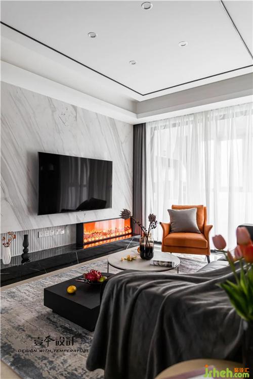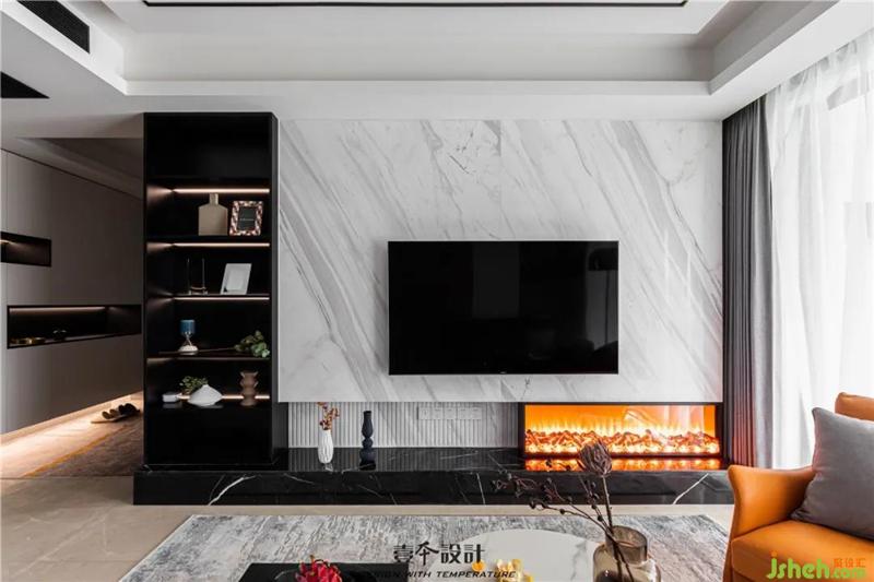 3:将电视背景墙做成大理石,扩大客厅空间感