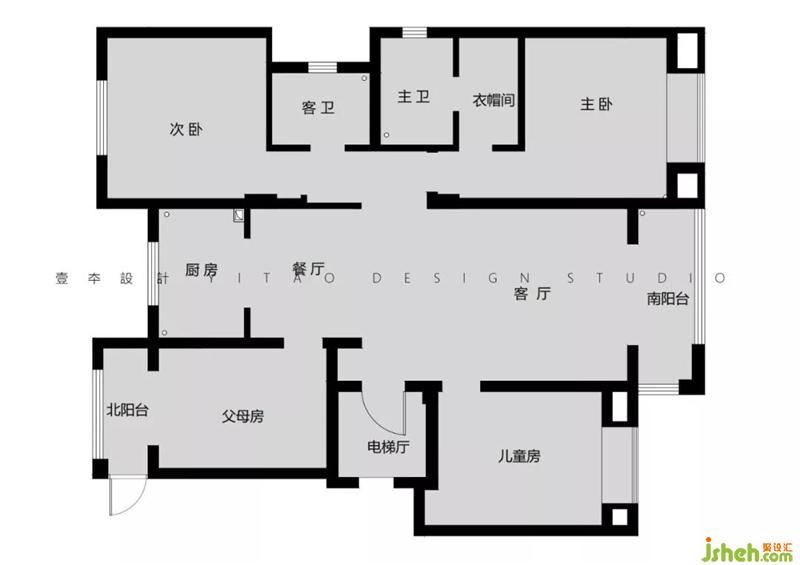 4:父母房外扩到北阳台位置,挤出一个楼梯间,通过室内楼梯直接上顶楼露台,洗衣晾晒,休闲娱乐空间全部放到顶楼阳光房。室内设计师