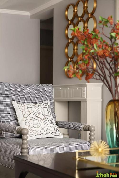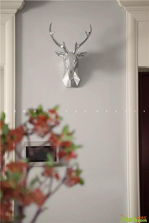 在大量的灰度色彩中我们采用了一些金色材质的饰品,提升了整体的品质感让空间不至于沉闷。