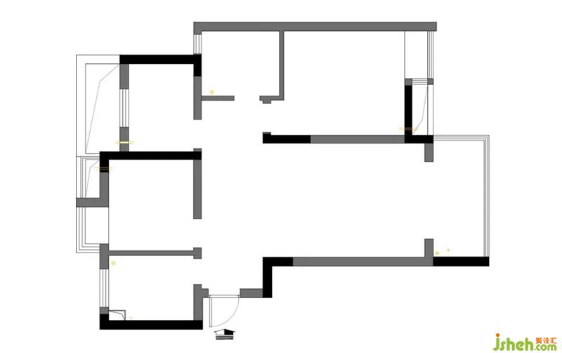 3:将北次卧的隔墙拆除,设备平台纳入房间内,成为一个标准房间。