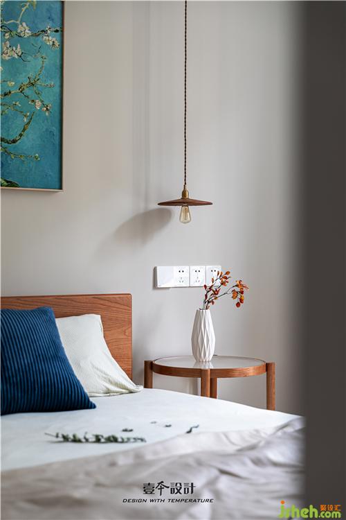 老人房没有太多装饰,同样保持轻松自然的舒适氛围,木色双人床和床头柜设计,搭配浅暖灰色床头背景墙,简单的挂上一副装饰画,温馨感由内而生。