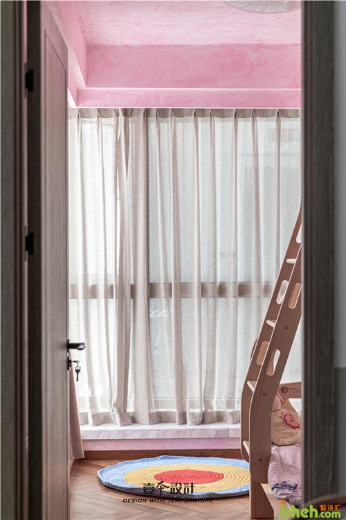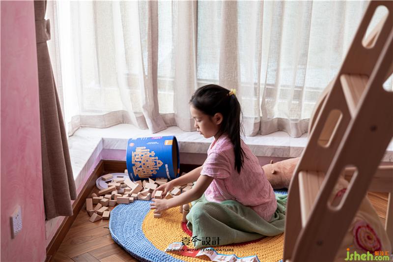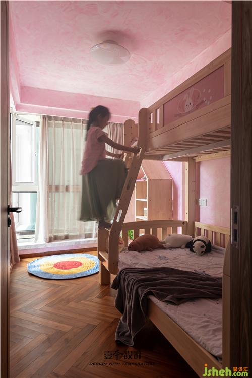 儿童房大面积采用了女儿最喜欢的粉色,特别一提的是,粉色的艺术漆是由阳老师和女儿自己亲手刷上去的,手工艺术漆变幻的质感、彩色圆形地毯尽显童趣,拍照当天这里就是孩子的天地。
