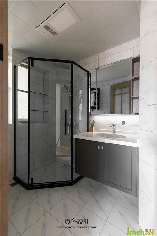 卫生间我们延续简约风格,整面的镜柜,空间显得更大,简易的干湿分离,保证卫生间通透整洁。