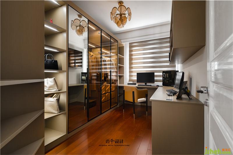 衣帽间+书房的设计,储物不用担心,L形书桌,两个人也可以同时办公,完全适应对方,不受干扰。