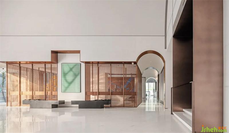赋予空间中国建筑的底蕴,联结未来的气度 : 营销中心设计以现代的材质传递以古鉴今的理念,打造一处联接传统、当代与未来的自然艺术空间。承结工艺与工业,缀加传统文化符号,在融入区域风貌的特定环境下,给工业风格增抹一丝禅意。我们以此为念,注入售楼处且中且西,也古也今的DNA。