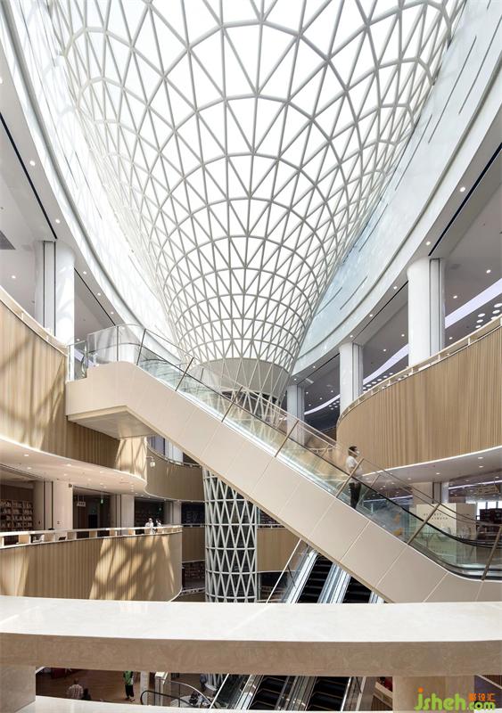自然的光借着季节推移,透过建筑空间,让人感受到细腻光线变化赋予空间不同的气氛,就像文化历史长河的流淌,让空间记录万象。白色天空,轻盈的线性光带,宛如“汉水”在空间流淌,带来缓缓生机。