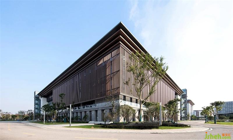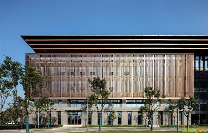 建筑外立面是竖向排布的金属线条,具有挺拔、高耸、向上的视觉感受,无形之中自有一种浓郁的韵律感,像一串优美的音符。