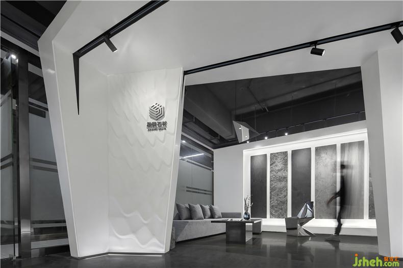 传统石材的制作工艺,是用敲打形成「碎片」。室内设计师以此为灵感,激发了本案构想的锚点——「陨石碎片」,用碎片进行空间组合,让设计与多元的艺术形态相协,传递充满张力和艺术创意的空间精神。