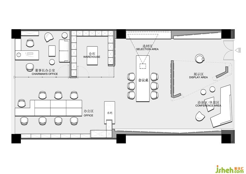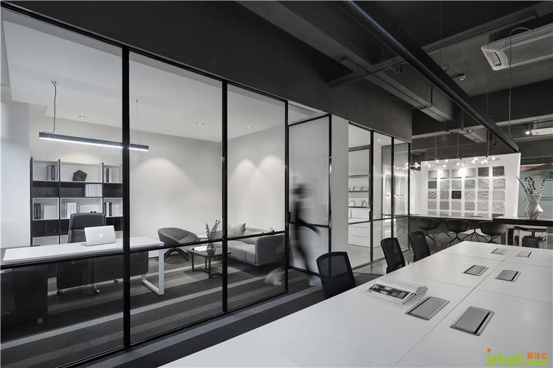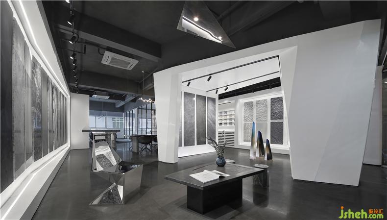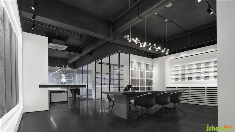 空间的大体色调最终确定为黑白。在呈现的姿态上,室内设计师并不作富有视觉冲击力的切割,不刺激眼球,作为背景画布存在,旨在凸显空间体验和产品