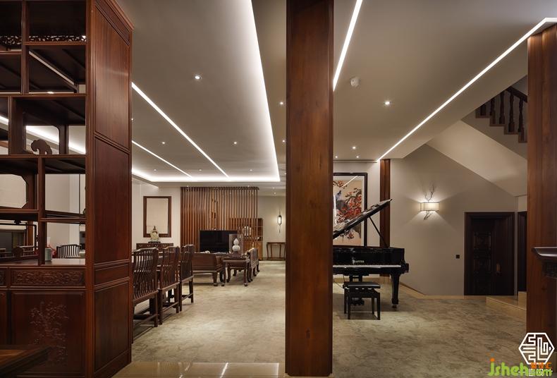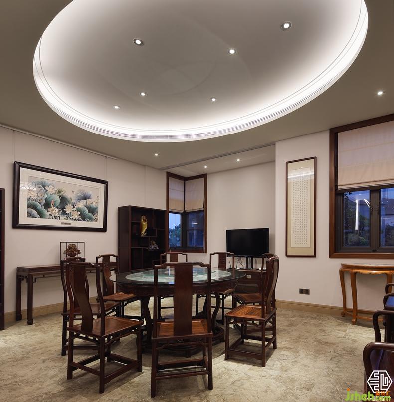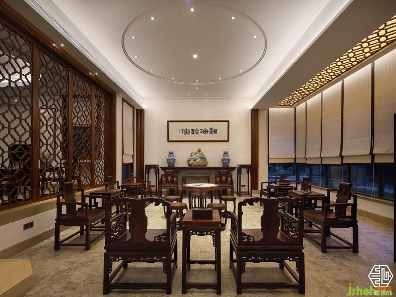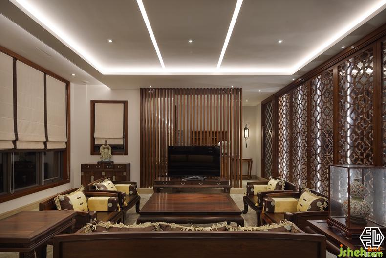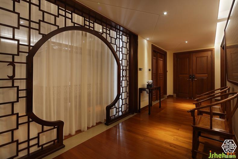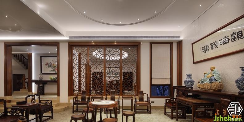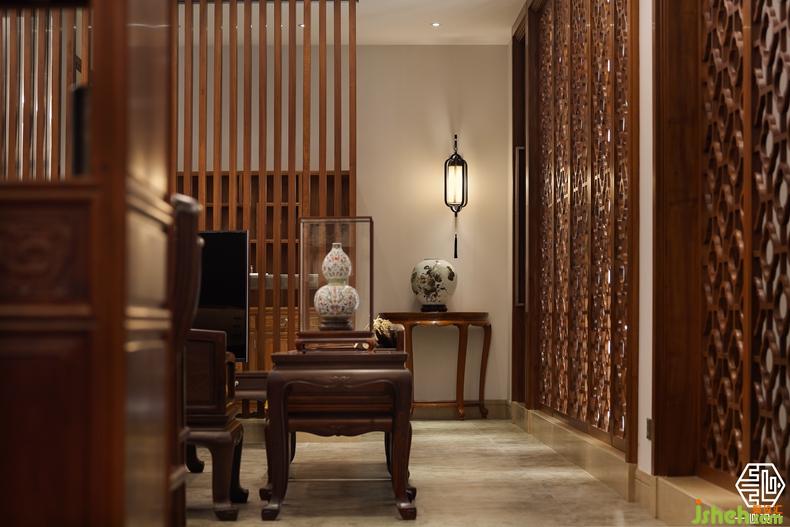 该案由两个别墅围合成一个院落形式,故称合院别墅。设计师根据两位业主不同爱好,用中式的手法演绎两种不同风格的中式设计。其中岭南人家酷爱柚木,酷爱红木家私,别墅装饰设计师巧妙的合其所好,炽烈的岭南文化与奔腾的红木艺术风格相互融合,形成了具有南方特色的中式别墅风格。