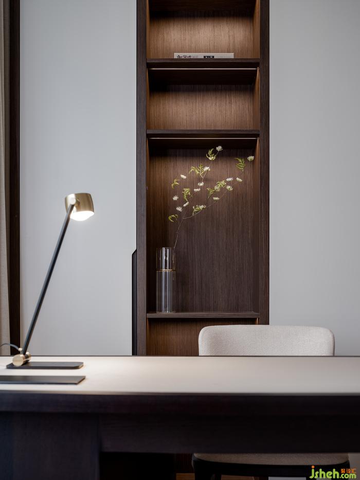 柔和白色与褐色之间的互动,北京复式大宅设计为空间增添出舒缓的宁静之态。