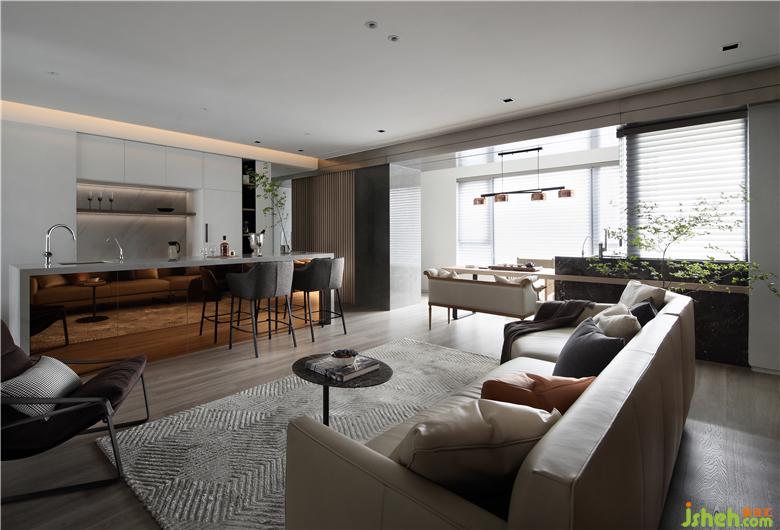 光影是空间的灵魂,材质则是空间的表情。顺应光的行进方向,室内设计师用了不锈钢板、玻璃、镜面、石材,通过反射和折射,让空间的光影层次更丰富,木饰面板则温润了整个空间。
