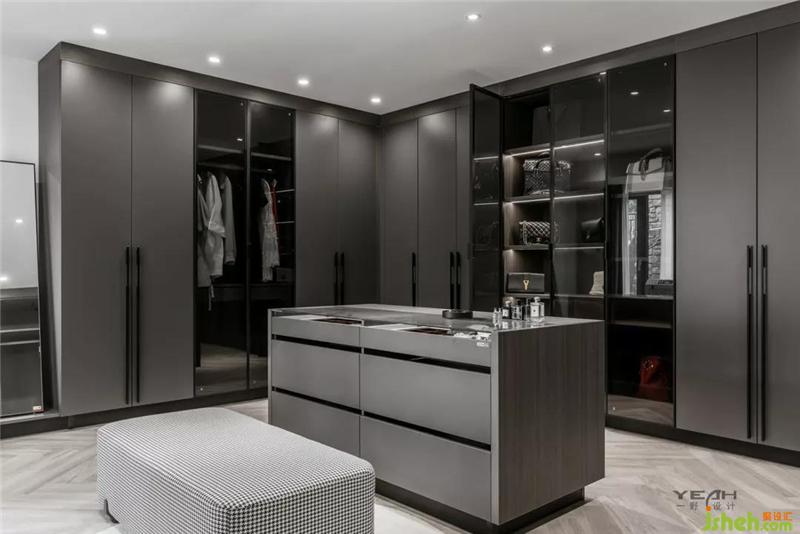 A large area of the bathroom is made of raw gray, and it is embellished with point light sources to create a high-class, mysterious and light luxury atmosphere.