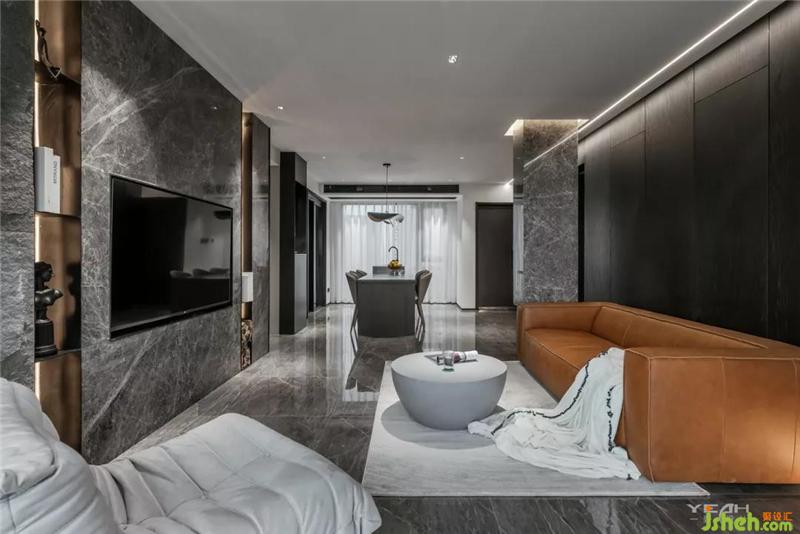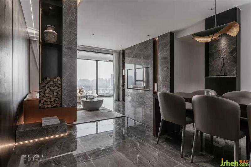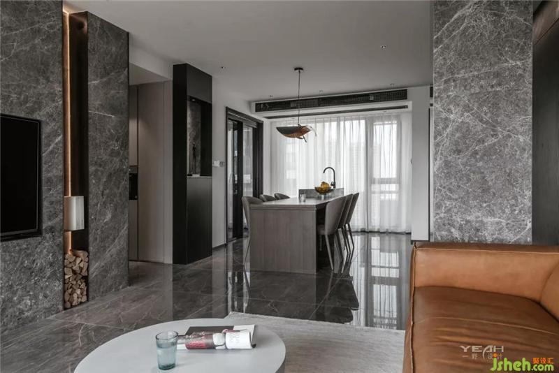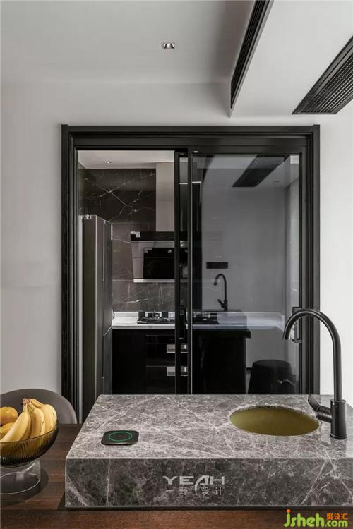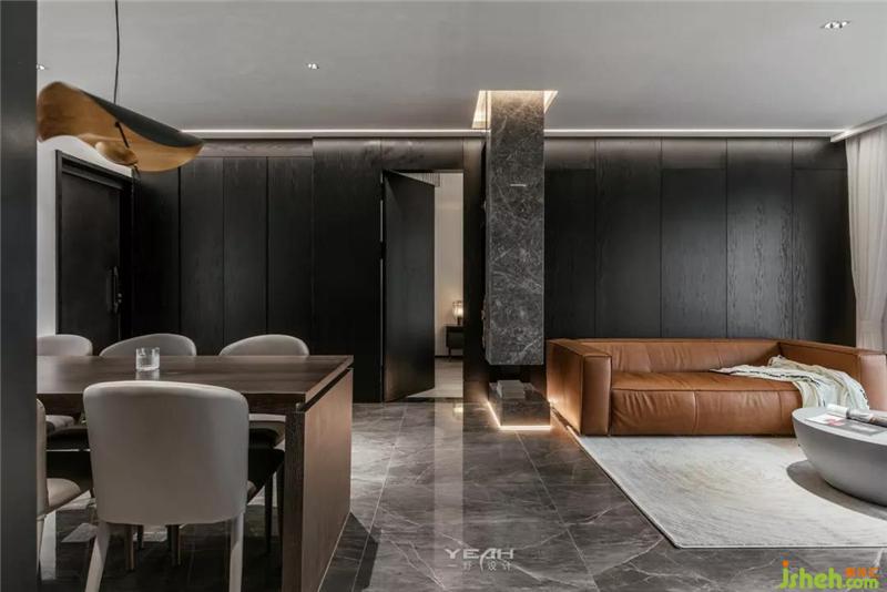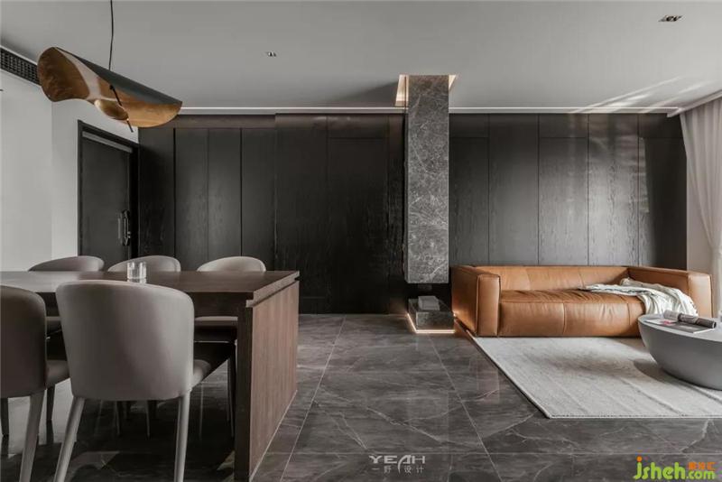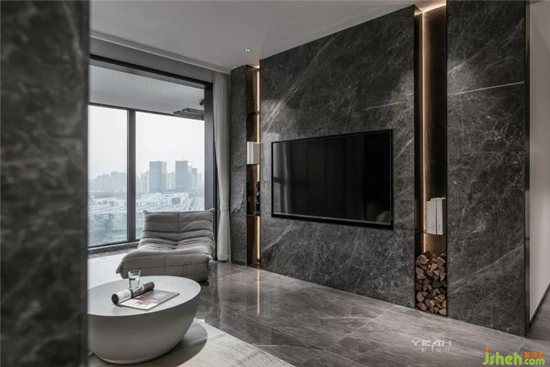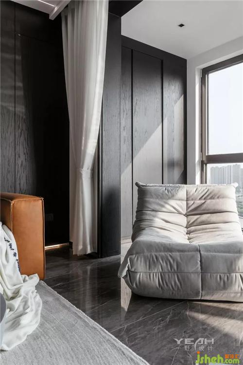 私人领域,须经过一个灰色空间的设定。室内设计师卧室依旧使用了满墙的饰面板,采用大面积落地增加采光,每日清晨京杭运河便印入眼帘。