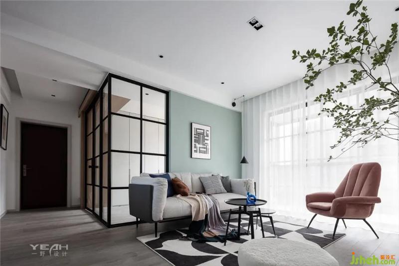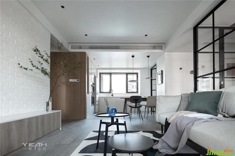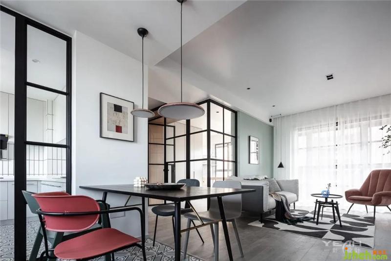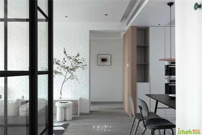 释放空间的第一步就是打开空间,让阳光空气可以进来;装修设计通透的钢窗取代实墙,与原有的墙体一起演绎空间中的虚与实,光线透过玻璃,充实了整个空间。