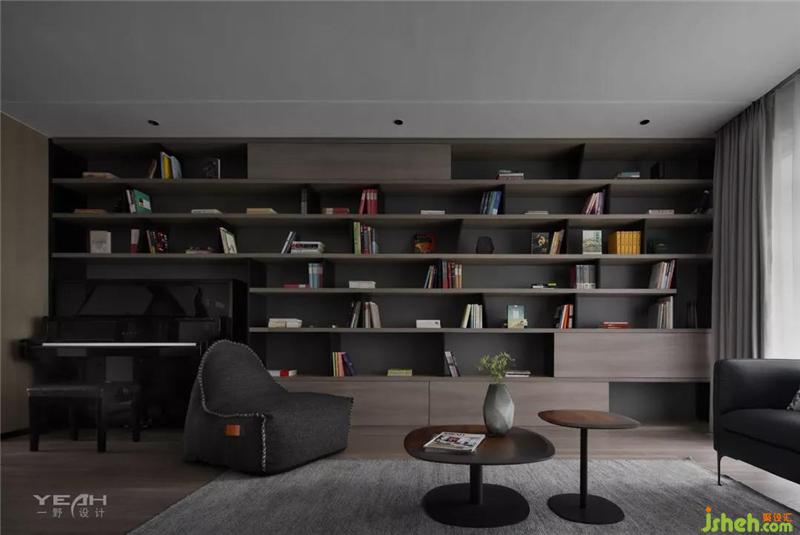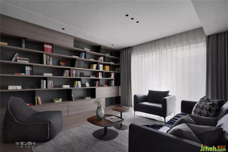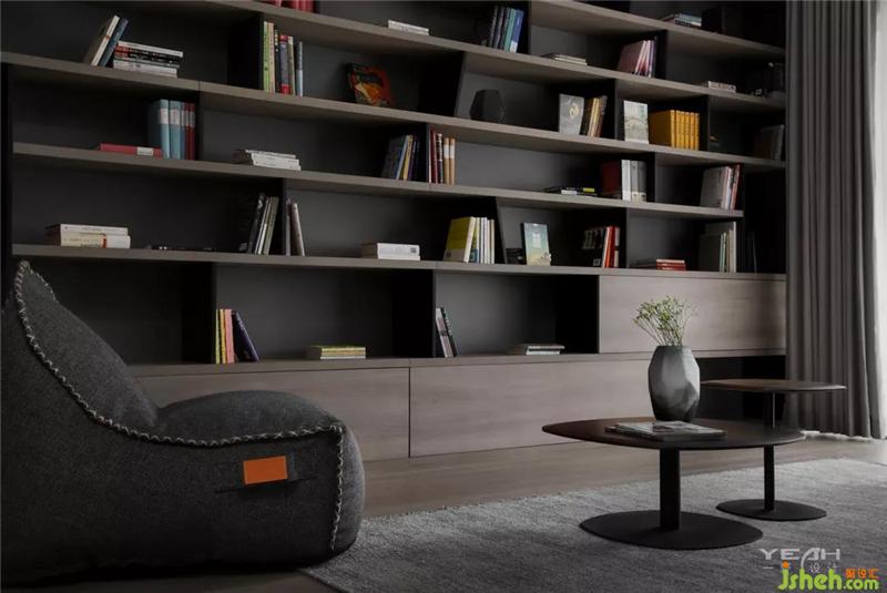 Space infects others through the atmosphere. A whole bookcase is placed in the living room. It is specially emphasized that the bookcase extends from north to south. Along the direction of light, it produces light and shade. With the blessing of light, it is like a cultural corridor with lasting charm, which edifies people living in it.