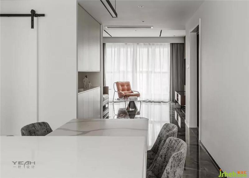 The residential space of this case uses black and white gray as the basic color of the space. The clean lines give the space more free beauty. The hidden lamp tube and the light strip fit the overall design, and the overall decoration texture application and the space structure form a good interaction and echo each other Connect with each other again.