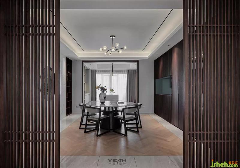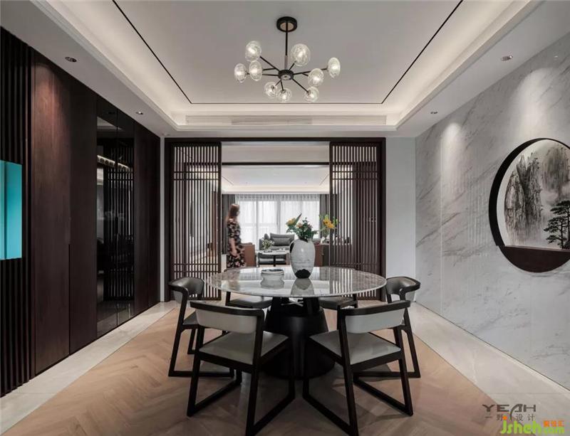 在对材料的选择上,设计师始终秉持着自然环保原则的同时,选材的质感、肌理、形制都精心考究,其中酌量添加金属、玻璃等现代装饰材料,使设计更加现代时尚气息。