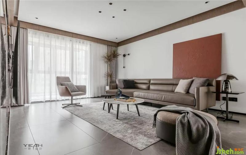 The red decorative painting is used to express the enthusiasm and simplicity of the owner under the simple color expression.