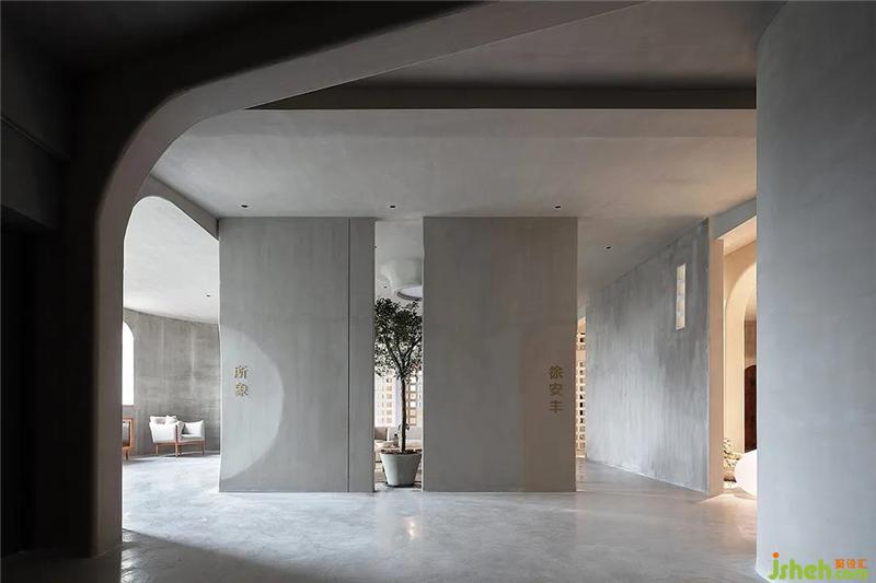 摒弃过多材质堆砌,整案墙面都选用了水泥艺术漆,地面是现磨水磨石,色调达到一致,在这一体之间,去切割出每块功能分区,也考虑了构造的穿插问题,不多不少。