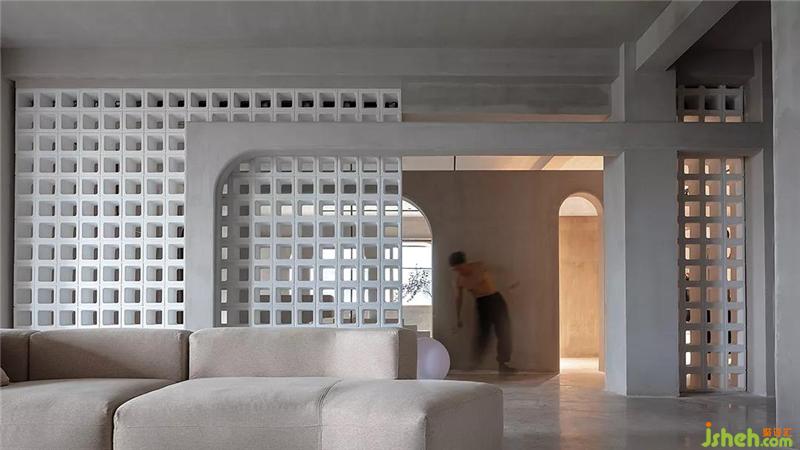 整个600平的空间分割成大回字形,两边的过道光线比较弱,便采用了空心砖作为半隔断形式,将光线偷进来的同时,还要为它塑形。解决暗部问题也增加了空间体验感。