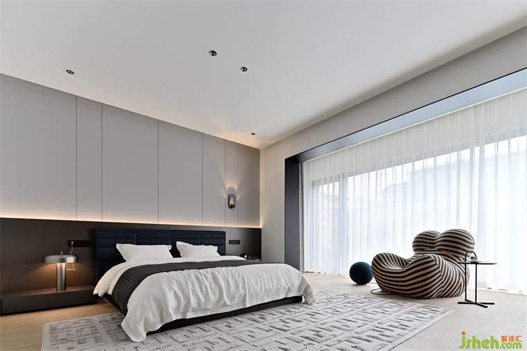 材质的碰撞和搭配才让主卧的风格形成一个整体。苏州别墅装饰布艺的软糯温柔,金属的坚硬不羁,皮质的原生触感,各自保有个性以及渗透,值得细细回味。Collision and collocation of materials Just let the style of the master bedroom form a whole The soft waxy fabric is gentle,The hardness of metal,Primary tactile sensation of cortex,Each has its own personality and penetration,It's worth aftertaste.