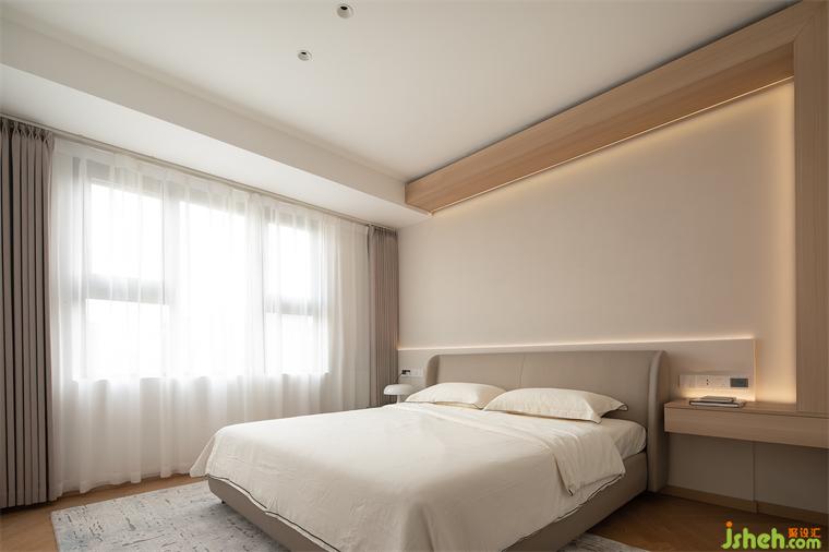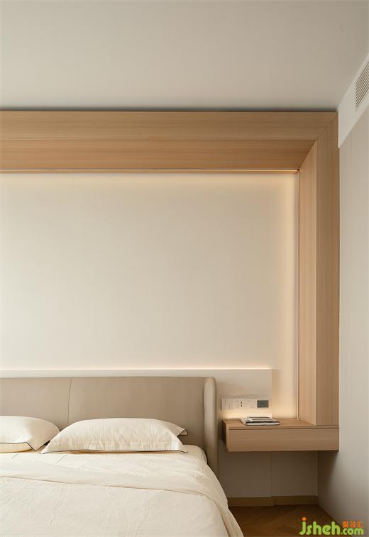 卧室的设计以质朴、素雅为原点,通过纹理、材料和光线的灵活组合,感受方寸间的起伏对比,彰显空间的持续性与稳定感,透露出时光沉淀下的闲适意蕴。