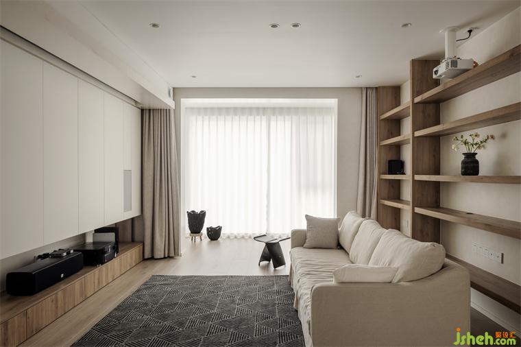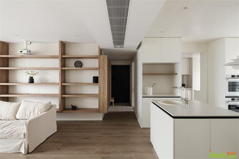 清隽简洁的空间布局与家具陈设与木色自然交融,延展出安静、祥和的空间情绪。家具以木质与棉麻的材质为基调,形成自由度与实用性适宜的弹性空间。湖左岸大平层装修设计铺满整墙的原木展示柜,回归自然的形态,为家增添松弛感。在温馨日常里,与家人一起,体验生活的点滴,将闲适浸润入一茶一书之间。