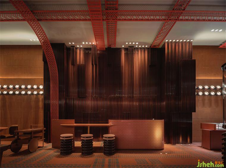 长春是中国的历史文化名城,至今保存着造车厂早期建筑,其建筑风格受俄罗斯式建筑影响,拥有砖红色的外墙。设计师以此获得灵感,在空间内运用不同深浅的砖红色,营造出强烈的视觉感,呼应北方城市特有的大气与历史厚重感。