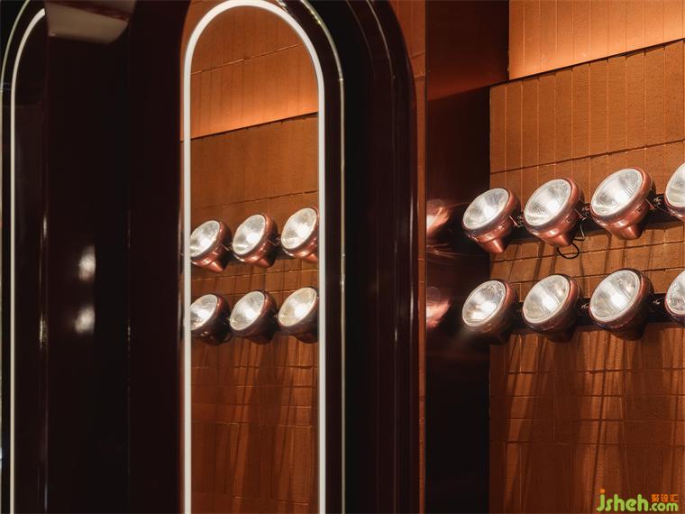 做工精细的珠宝值得在明亮的灯光下反复欣赏,因此空间中设置密度较高的照明和镜子,方便客人全方位试戴。灯车灯元素被运用于中央展示柜吊顶和墙灯。专门定制的造型如汽车上必不可少的车灯一样,珠宝店设计将室内的空间质感更完美展现出来。流畅的弧形线条可以在空间内找到很多印迹,是汽车造型的流线型再现,也是珠宝设计美感的照应。