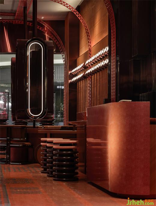 此外,空间内的红色基调除了呼应与汽车工业相关的元素,其本身就是拥有热烈、喜庆的暖色,让以女性为主导的珠宝受众可以在踏入空间时被吸引。设计师将长春特有的文化特色以赞颂的姿态通过视觉手段呈现,希望进入此空间的客人体验到城市与品牌之间的共鸣,享受整个购物过程。