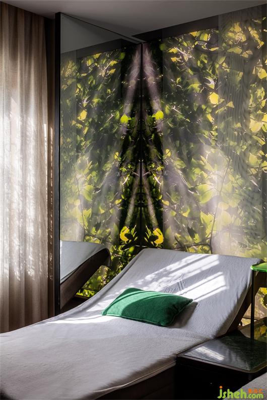 最终到达包厢之时,拨开枝丫,重见暖阳。萌发的枝叶也在这里逐渐繁茂为一片片的绿荫,墙面的镜子将这一片暖阳无限延伸,也是意味着生命力的无限可能。