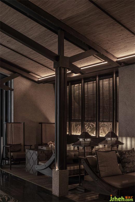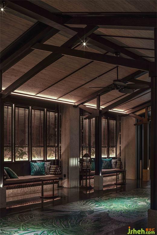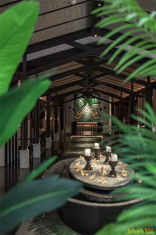 养生店设计构架不仅是作为主景的装饰,更是贯穿始终的设计语言。过道利用挑高的优势,将构架结构在整个空间中进行延伸,把热带的温暖,带进悠长的空间里。