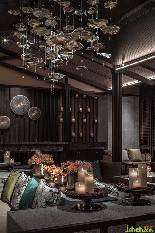 养生店设计在空间中,我们将这种对生活的美好愿景,化为点点烛火、化为叶叶金片、化作柔软布料,装点其中。
