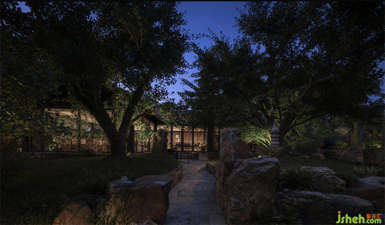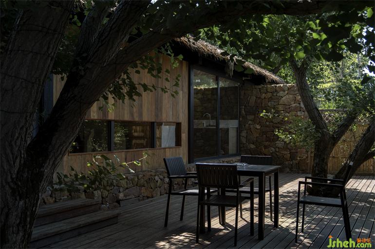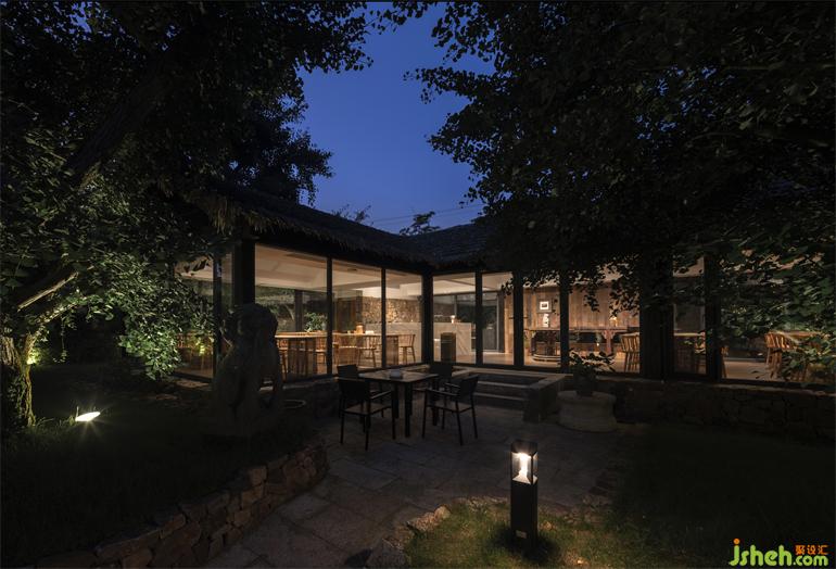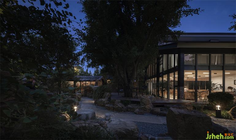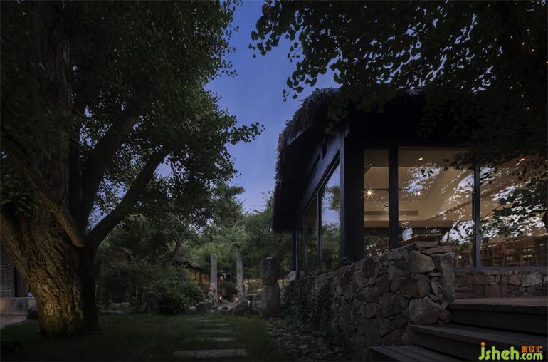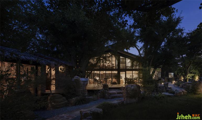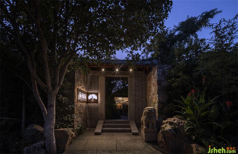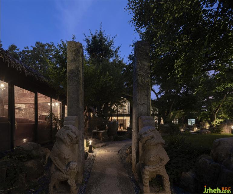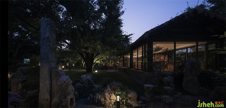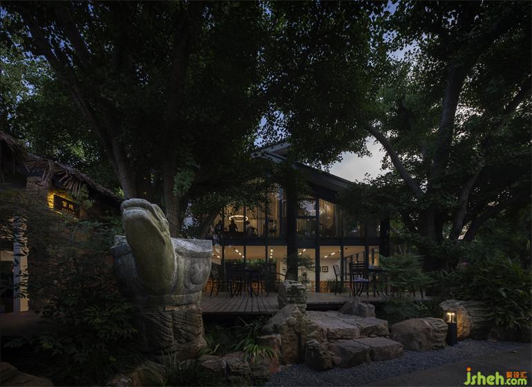 建筑可以理解为本来只是一个容器,视其功能定位而不同,不可能是孤立的单体,永远会与阳光、自然、风、水、空气并存,与气候并存。建筑外形的重要性可以理解为与视距有关,与周边环境有关,与情绪有关,与使用功能有关。民宿改造作为一个占地十亩,有着数棵很多年的银杏古树且位于苏州东山太湖之畔的餐饮、住宿、娱乐等复合型功能的载体,我们在本案项目整体设计中采用自然包裹的手法去设计,如树木、小溪、石桥、雾森、石雕、草坪、墙蔓植物等,并用黑色碳化木做建筑外立面的包裹,民宿改造用大量的植物去包裹建筑、用时间去把建筑与自然融为一体,用时间的变化去改变建筑,生长的建筑是另外一个思想主题,会慢慢地产生变化。阳光照射也会改变建筑的形状,四季也会改变建筑的形状。或许二十年后的建筑已经不是现在的建筑,而我们也不再是我们。