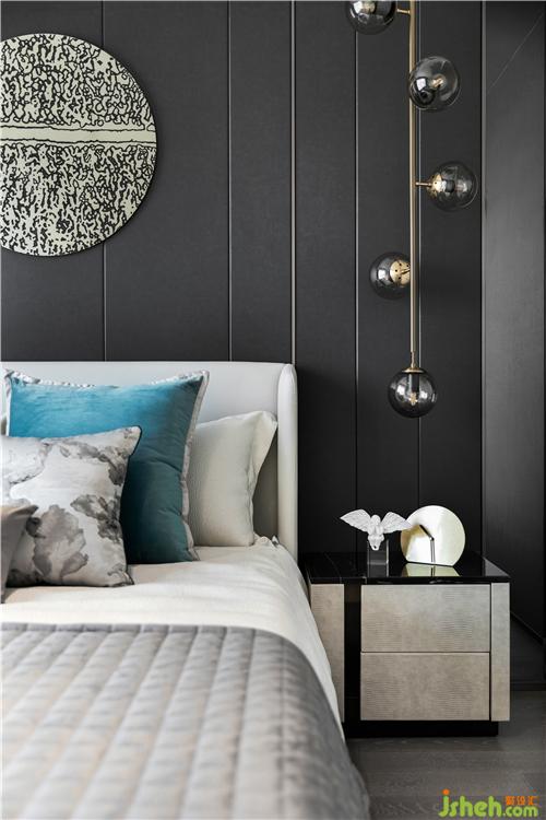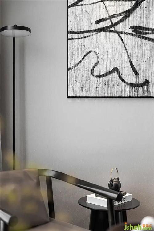 作为延续,次卧继承了主卧的温润与淡雅,在别致的灯饰、挂画和那数枝白梅映衬下,却又呈现出另一番独属的风景。
