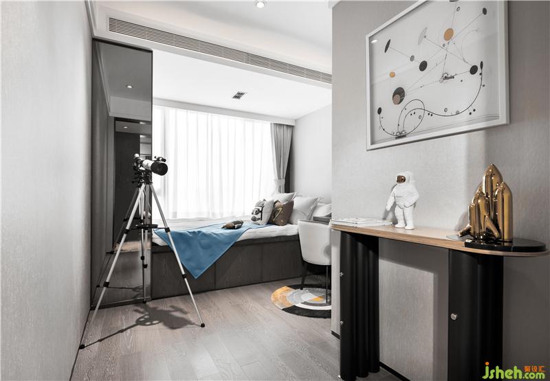主卧的色调有一种宁心安神的吸引,深圳室内设计师背景墙褐色和米黄的硬包组合似是一剂助眠的良方;一日的劳作后,能够无虑的安心入眠,无疑是件极其美哉的事情了!