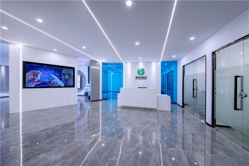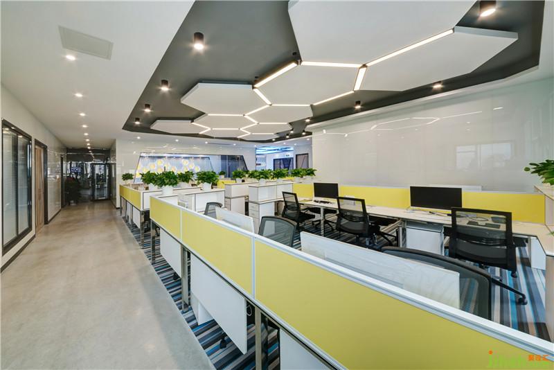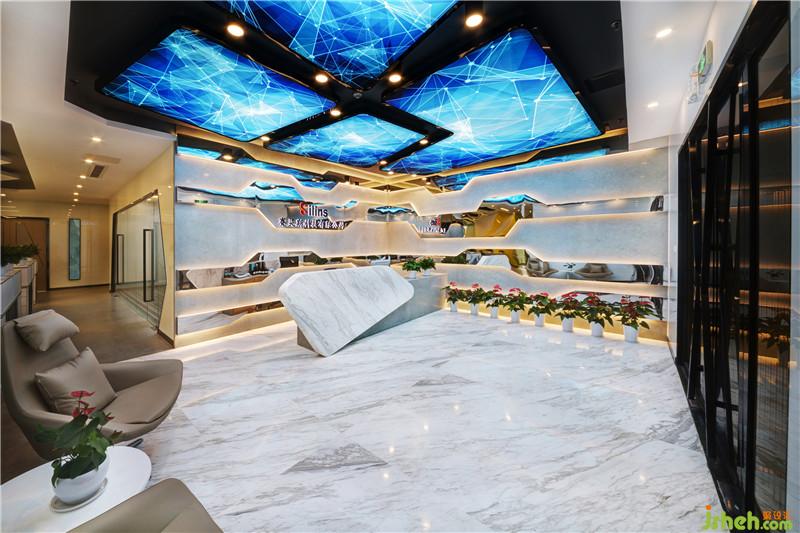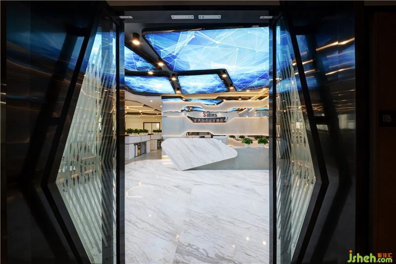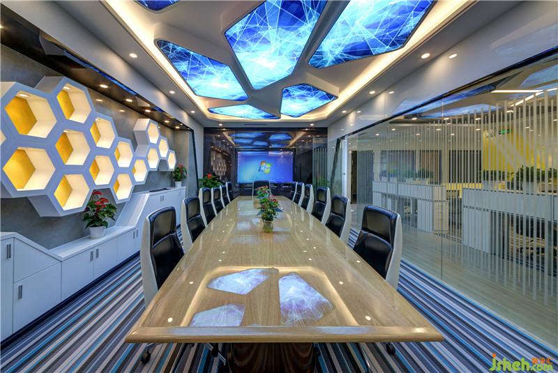 Silins科技办公室设有接待前厅、开放办公区、会议室、部门经理室、财务室、董事长室等,其中大部份都是开放共享的协作工作区,每一处都充满视觉张力,令人流连忘返,独特的编织地毯、星际天花图案和蜂巢图型,不规则几何造型与蓝黄灰色系之间的对比碰撞,营造出活力清新的环境氛围,让每一处都是满满的精彩。深圳装修公司