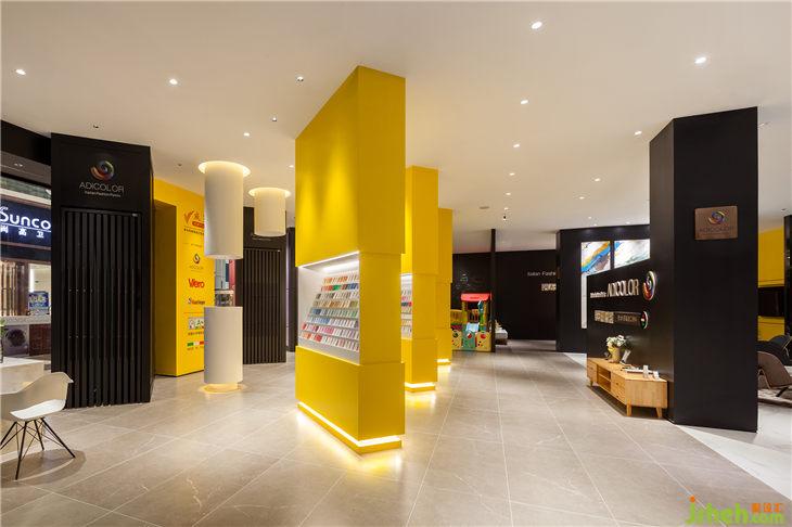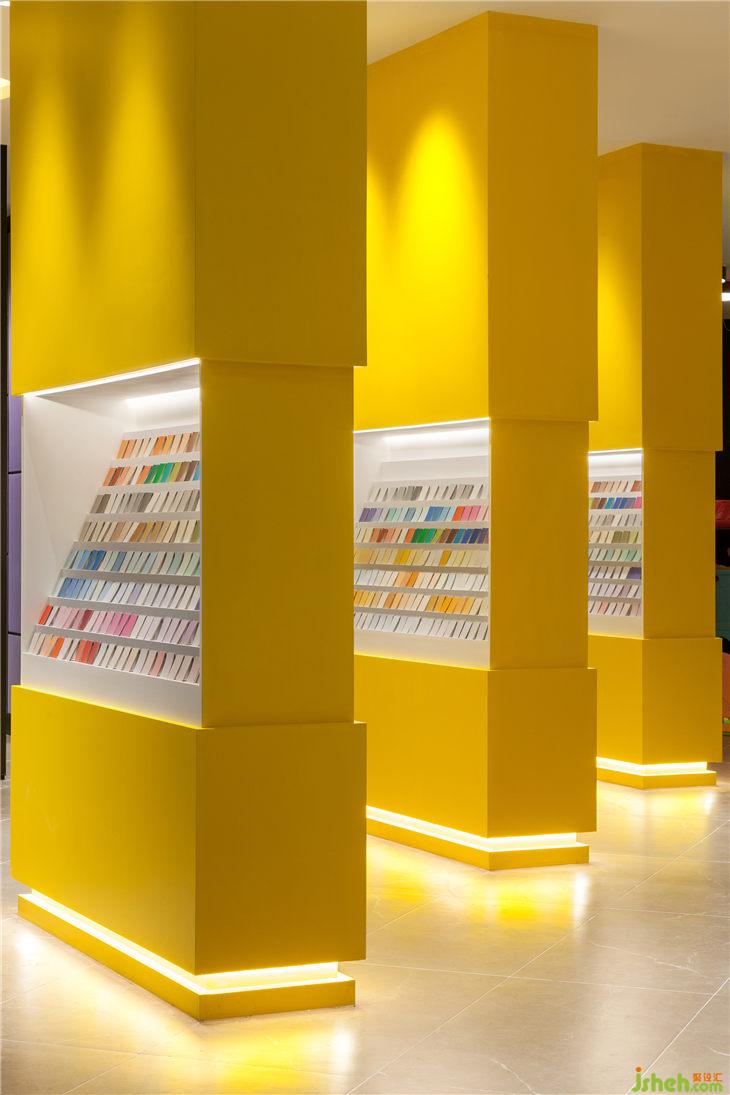 色卡区是醒目的爱马仕黄,让人一眼就能看到它,极致简约的设计,简洁明快的色彩,行走在展厅中,给人一种年轻时尚感,颇具震撼力。