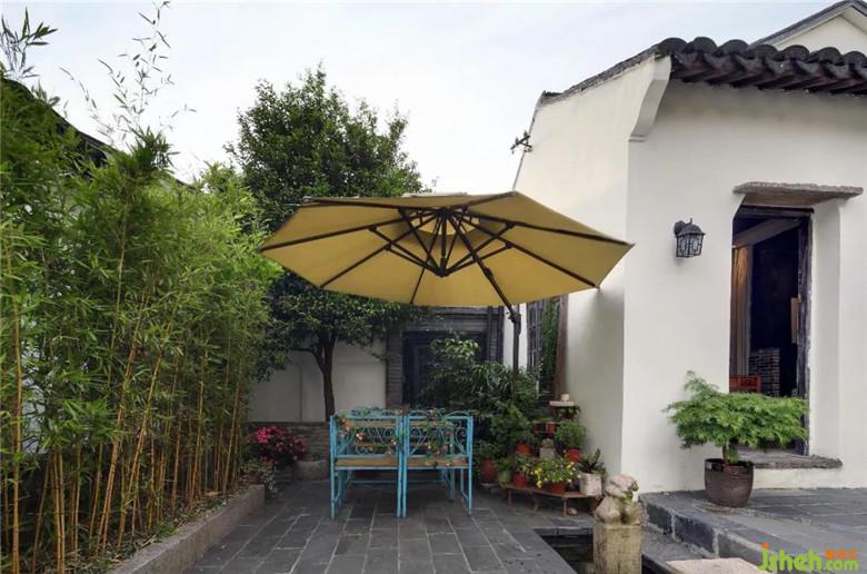 主要材料:老木定制、旧物回收、小青砖、紫晶灰、油纸伞、老杉木等