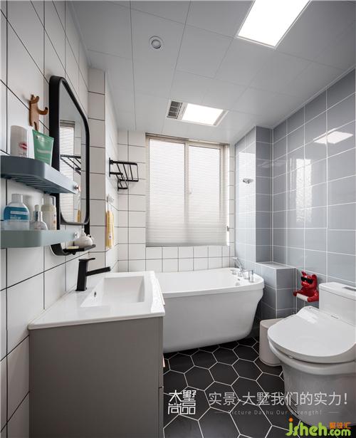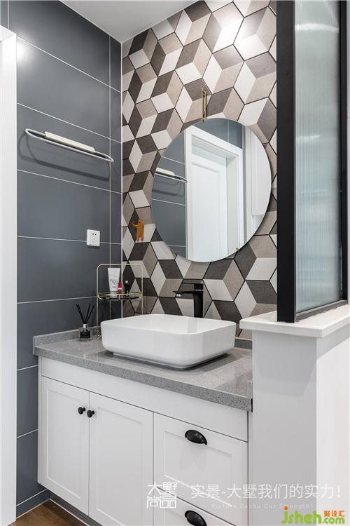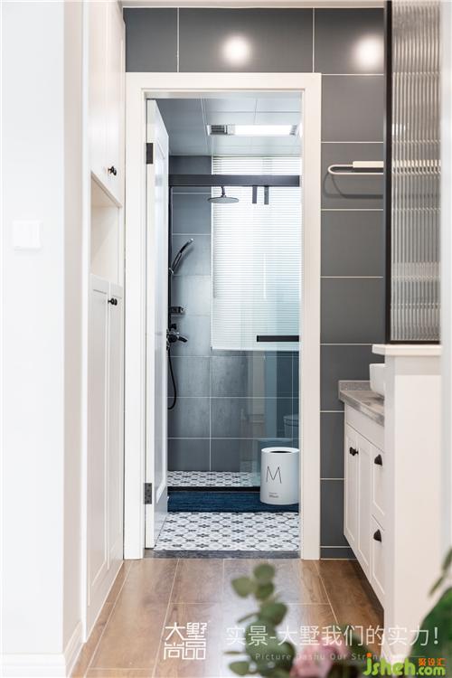 外卫采用了干湿分区,解决早上人多一卫双用的功能,拼接瓷砖与纯白储物柜搭配,颜值高,实用强。