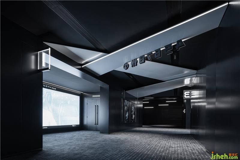 汲取大厅主元素中的几何体放置于观影通道中,结合纵向空间尺度进行演变。而观影通道除去引导观影者找到影厅入口和指示各类功能空间方向的功能之外,还承接和过渡了空间风格的变化。
